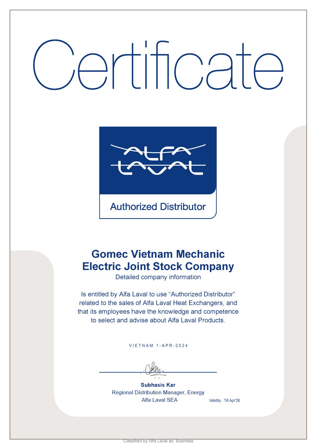 Chứng chỉ Alfa Laval