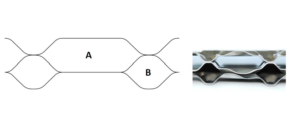- Tối ưu hóa kênh trao đổi nhiệt: Nước thải chứa sơ sợi chảy trong kênh rộng (A), trong khi nước sạch chảy trong kênh hẹp (B), tạo dòng chảy rối tối đa, nâng cao hiệu quả trao đổi nhiệt.